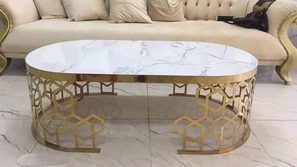 Tên sản phẩm: Bàn trà hình oval chân mạ vàng hình tổ ong