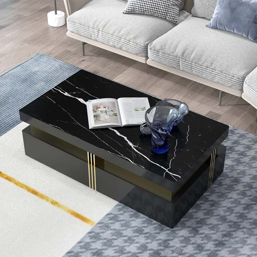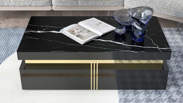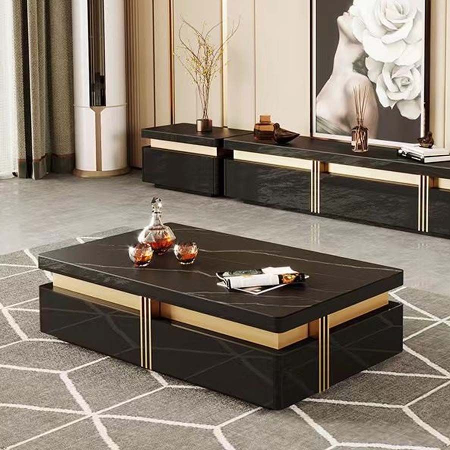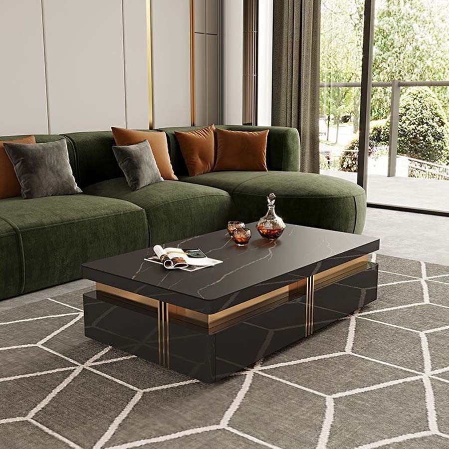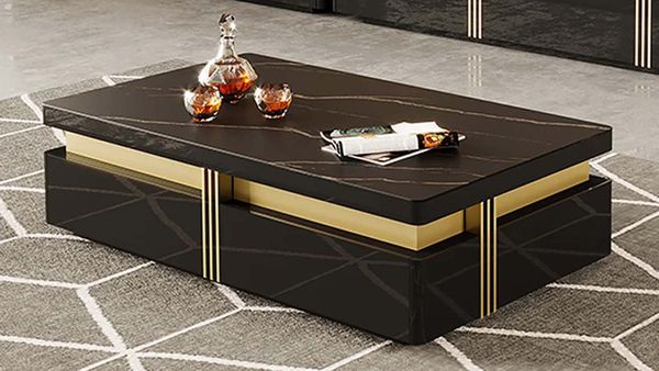 Bàn trà mặt đá AD913 là sản phẩm đẳng cấp với thiết kế hình chữ nhật, mang vẻ đẹp hiện đại và sang trọng. Bàn có mặt đá tự nhiên cao cấp với vân đá ấn tượng, kết hợp với khung gỗ MDF chắc chắn, tạo nên điểm nhấn độc đáo cho không gian phòng khách. Chi tiết kim loại vàng được trang trí ở phần cạnh, góp phần làm tăng thêm nét sang trọng cho bàn trà.