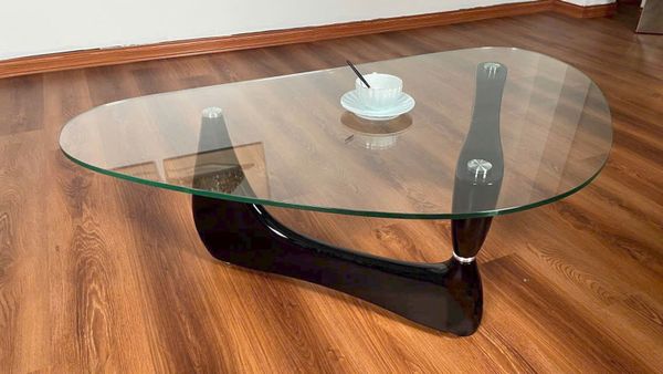 - Thiết kế mặt kính tam giác độc đáo: Bàn có mặt kính tam giác với các góc bo tròn, mang lại vẻ đẹp mềm mại và hiện đại, tạo sự mới lạ cho không gian.