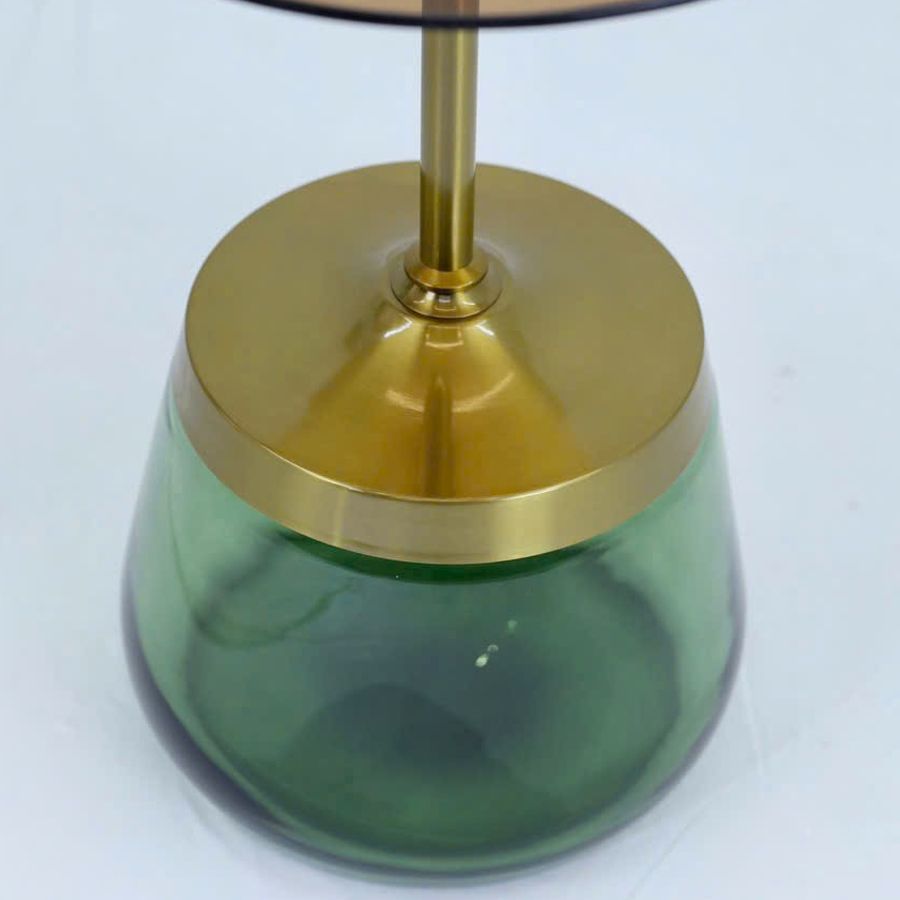 Chất liệu: Mặt kính màu trà, viền mạ vàng, đế thủy tinh