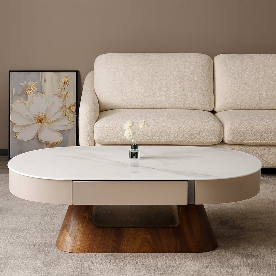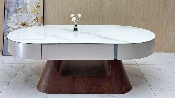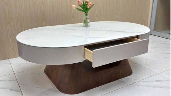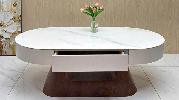 - Thiết kế oval mềm mại, giúp tiết kiệm diện tích và tạo sự cân đối cho phòng khách.
