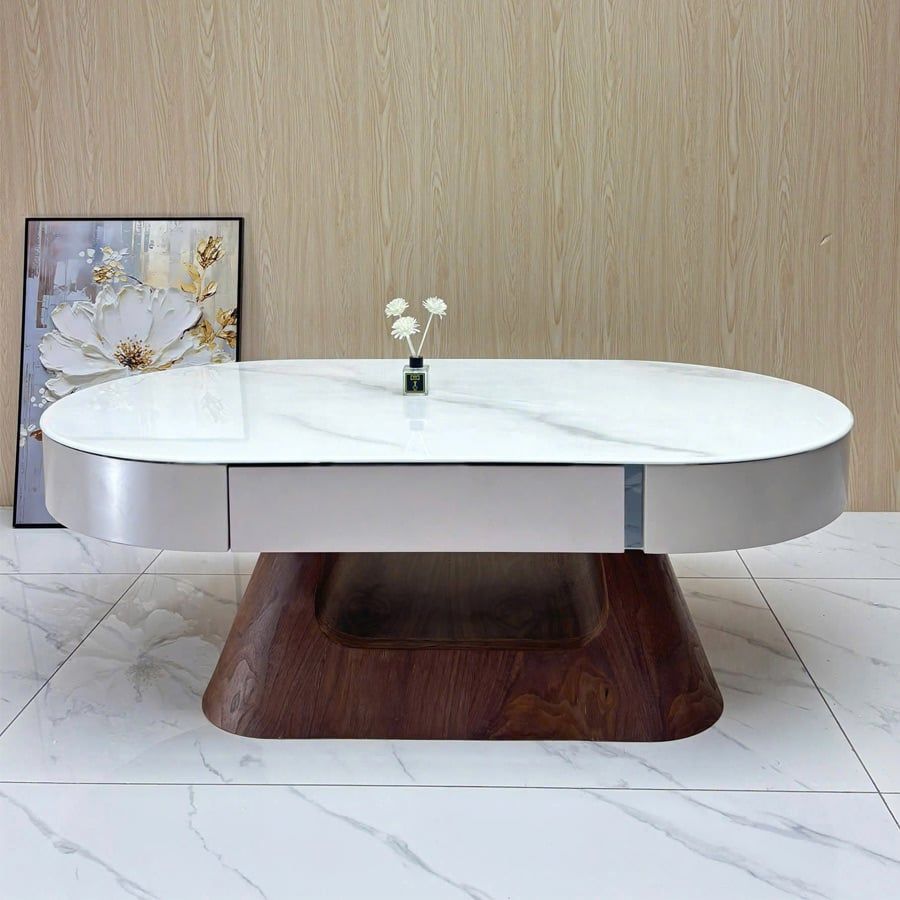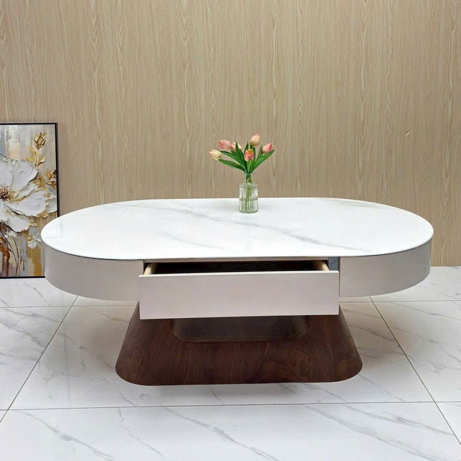 Bàn trà oval AKBT04 là lựa chọn hoàn hảo cho không gian phòng khách hiện đại, mang lại vẻ đẹp thanh lịch và đẳng cấp. Thiết kế mặt đá ceramic sáng bóng kết hợp cùng khung MDF và chân gỗ tự nhiên giúp sản phẩm vừa chắc chắn vừa tinh tế, dễ dàng hòa hợp với nhiều phong cách nội thất khác nhau.