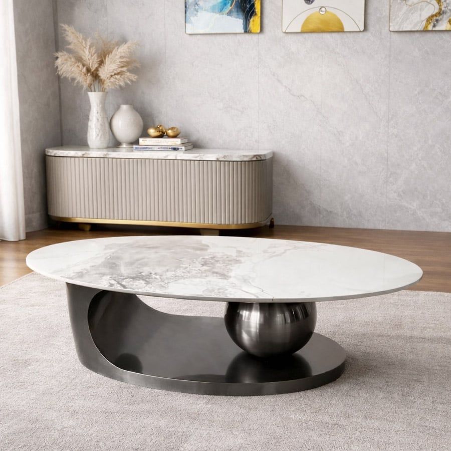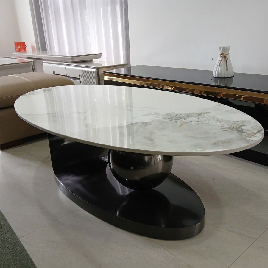 Ứng dụng linh hoạt: Bàn Trà Oval Mặt Đá Ceramic rất phù hợp cho các không gian như phòng khách, phòng làm việc, hoặc quán cafe, mang lại sự tiện lợi và phong cách cho người sử dụng.