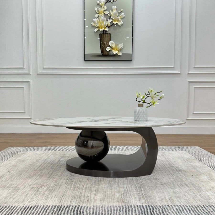 Bàn Trà Oval Mặt Đá Ceramic