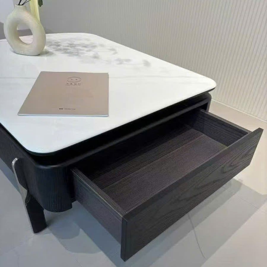 Chất liệu: Mặt bàn đá ceramic cao cấp, khung gỗ MDF sơn bóng hiện đại