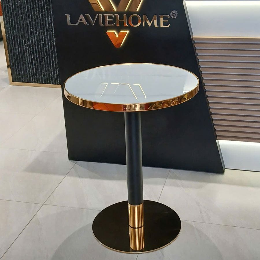 - Tại sao nên mua bàn tròn chân trụ đen mạ vàng DPBD5 tại Laviehome?