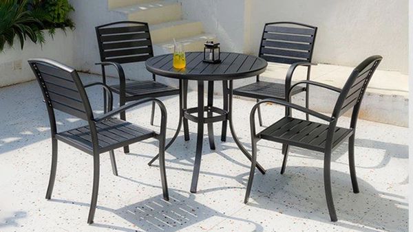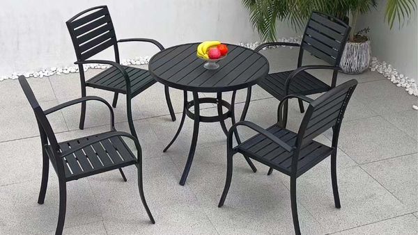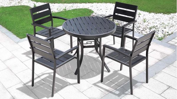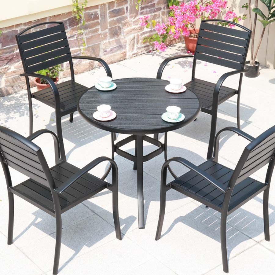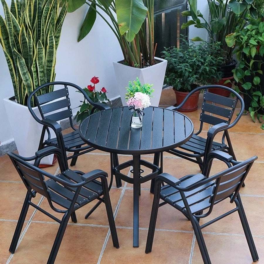 Bàn Tròn Đen Ngoài Trời Khung Nhôm Nan Polywood DPBV20