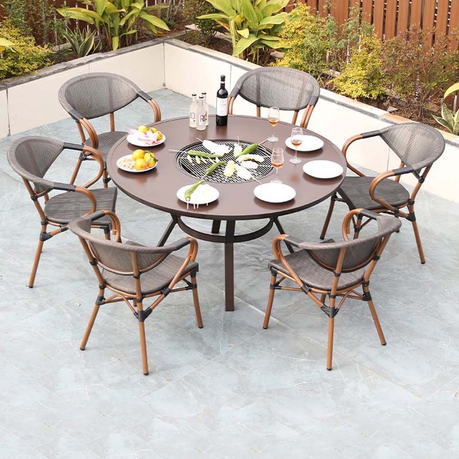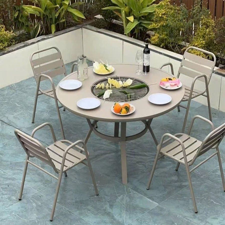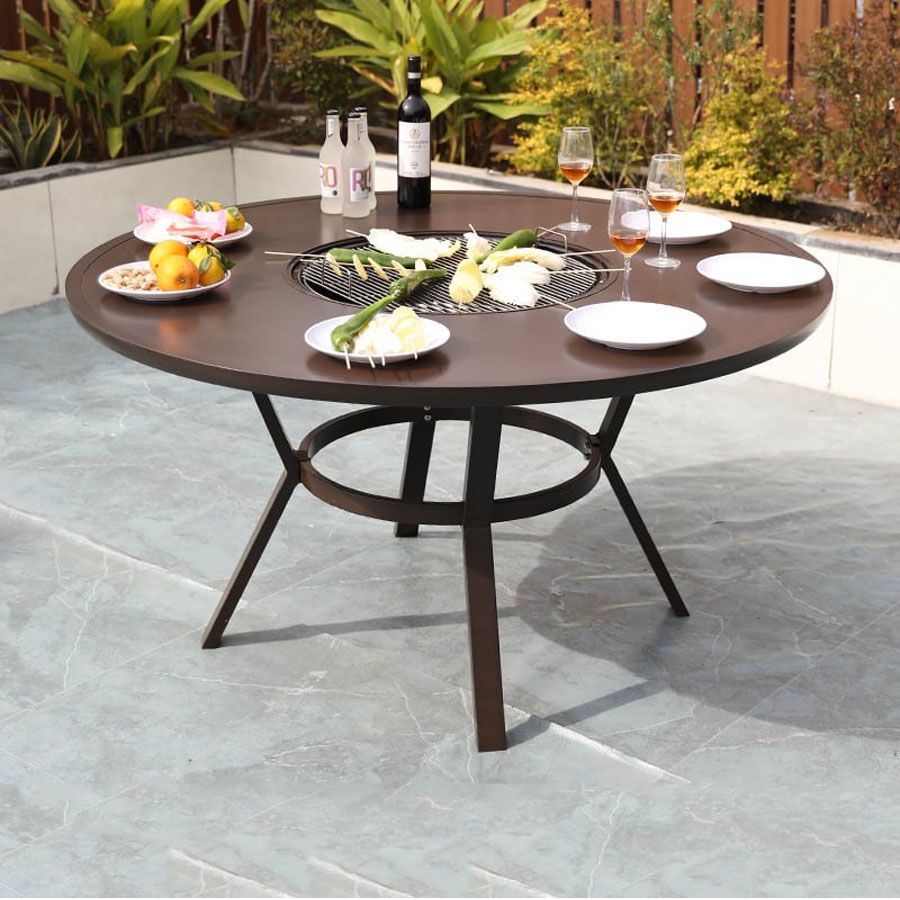 Bàn Tròn Nhôm Đúc Ngoài Trời Có Bếp Nướng DPBV26