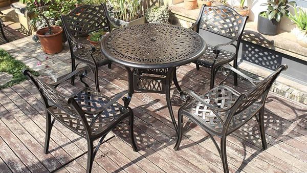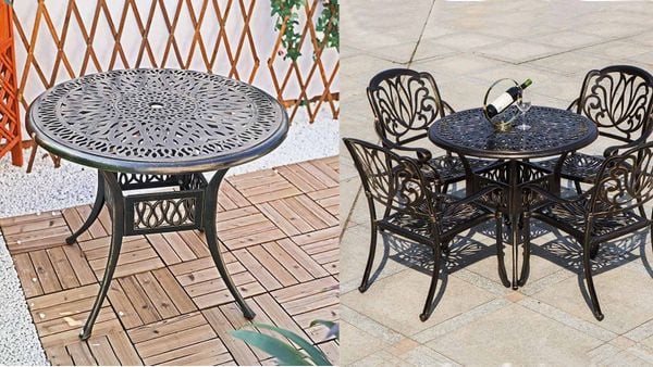 - Hoa văn tinh xảo trên mặt bàn tạo điểm nhấn thẩm mỹ cho không gian ngoại thất