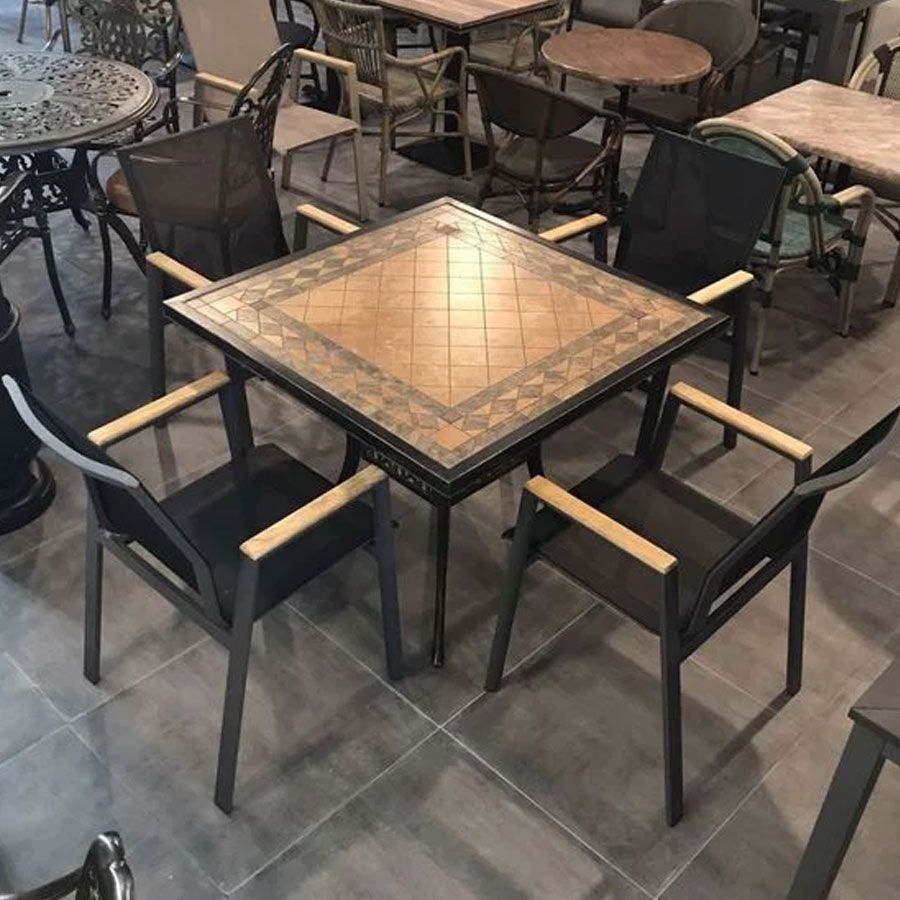 Mặt bàn được làm từ đá gốm cao cấp, không chỉ tạo vẻ sang trọng mà còn giúp bàn chịu lực tốt, bền bỉ trước mọi điều kiện thời tiết và dễ dàng vệ sinh. Kích thước 940*940*750 mm đảm bảo khong gian rộng rãi, phù hợp cho các buổi tiệc ngoài trời hoặc những bữa ăn gia đình thân mật.