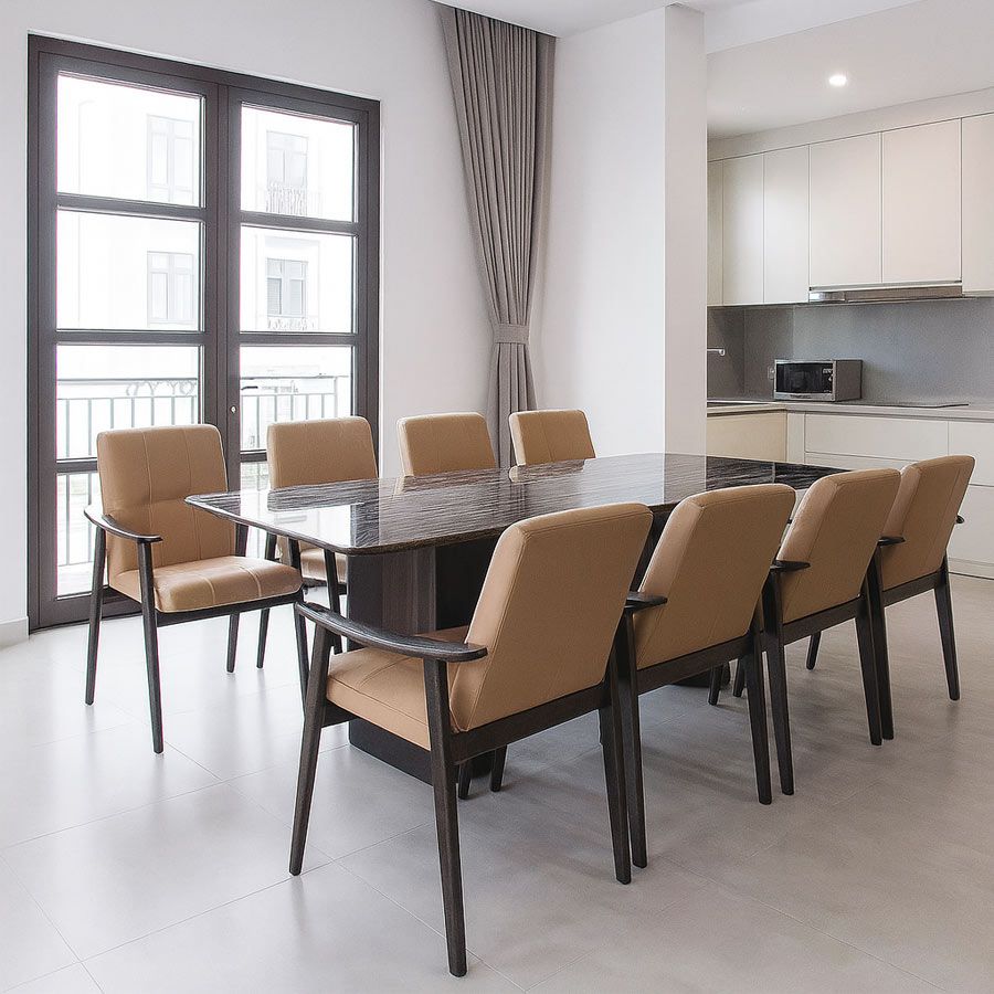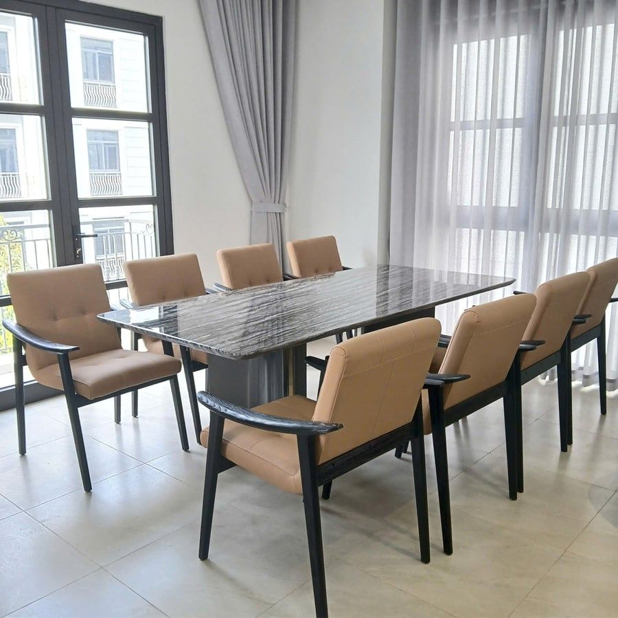 Bộ bàn ăn mặt đá ADF102 kết hợp cùng ghế da LHA01 mang đến không gian phòng ăn vẻ đẹp hiện đại, tinh tế nhưng vẫn giữ được nét ấm cúng. Với thiết kế tối giản nhưng đẳng cấp, bộ bàn ghế này phù hợp cho các gia đình yêu thích phong cách sang trọng và bền vững.