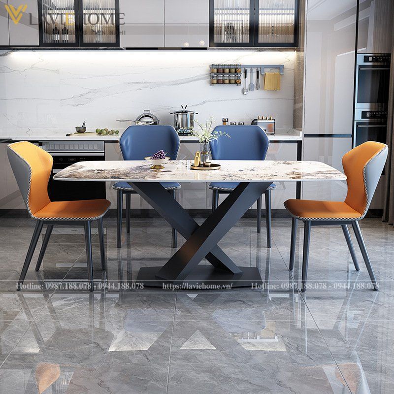 Bộ bàn ăn mặt đá Fiona kết hợp ghế Vaz là lựa chọn hoàn hảo cho không gian phòng ăn hiện đại. Mặt bàn đá Ceramic cao cấp có khả năng chịu lực, chống trầy xước và dễ dàng vệ sinh. Chân bàn sắt sơn tĩnh điện thiết kế kiểu dáng chữ X độc đáo, vừa tạo sự chắc chắn vừa mang lại vẻ đẹp thẩm mỹ cao.
