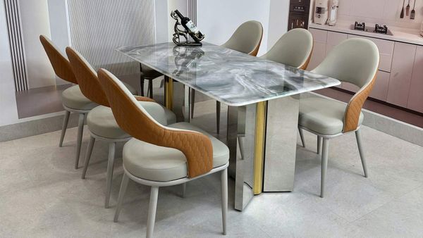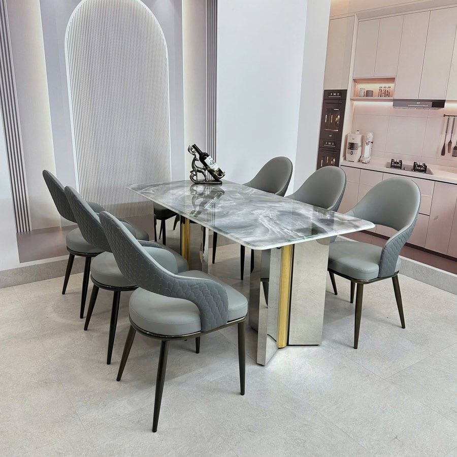 Bộ bàn ăn mặt đá HAK28 kết hợp cùng ghế ăn Alix HAG15 là lựa chọn lý tưởng cho không gian phòng ăn hiện đại và thanh lịch. Với thiết kế tinh xảo, mặt bàn đá thạch anh tinh thể mang vẻ đẹp tự nhiên, bề mặt sáng bóng và khả năng chống trầy vượt trội.