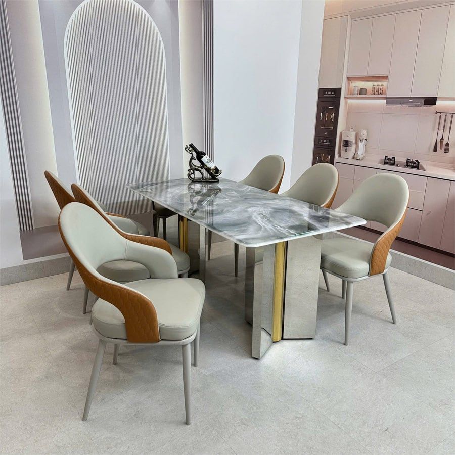 Bộ Bàn Ăn Mặt Đá HAK28 + Ghế Alix HAG15