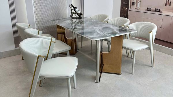 Bộ bàn ăn mặt đá HAK80 + ghế Ariston HAG55 không chỉ là món đồ nội thất tiện dụng mà còn là điểm nhấn nghệ thuật cho không gian sống. Với thiết kế hiện đại, chất liệu cao cấp và màu sắc trang nhã, sản phẩm là lựa chọn hoàn hảo mang lại sự sang trọng, đẳng cấp và tiện nghi cho mọi gia đình.