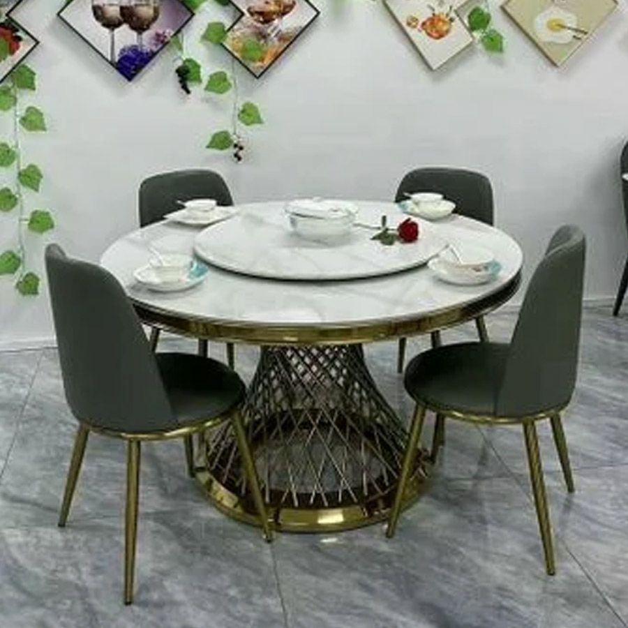 Chất liệu bàn: Mặt bàn đá Ceramic cao cấp, khung inox mạ vàng sang trọng