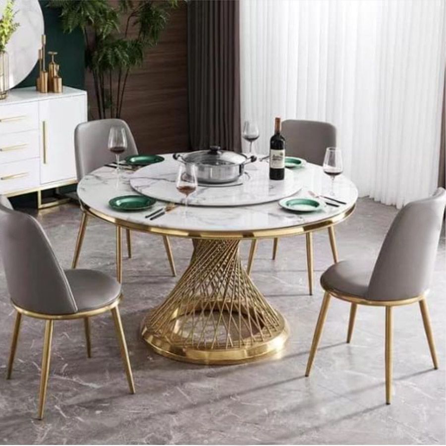- Khung bàn inox mạ vàng cao cấp: Tăng độ bền chắc, chống oxy hóa, giữ được vẻ đẹp lâu dài.