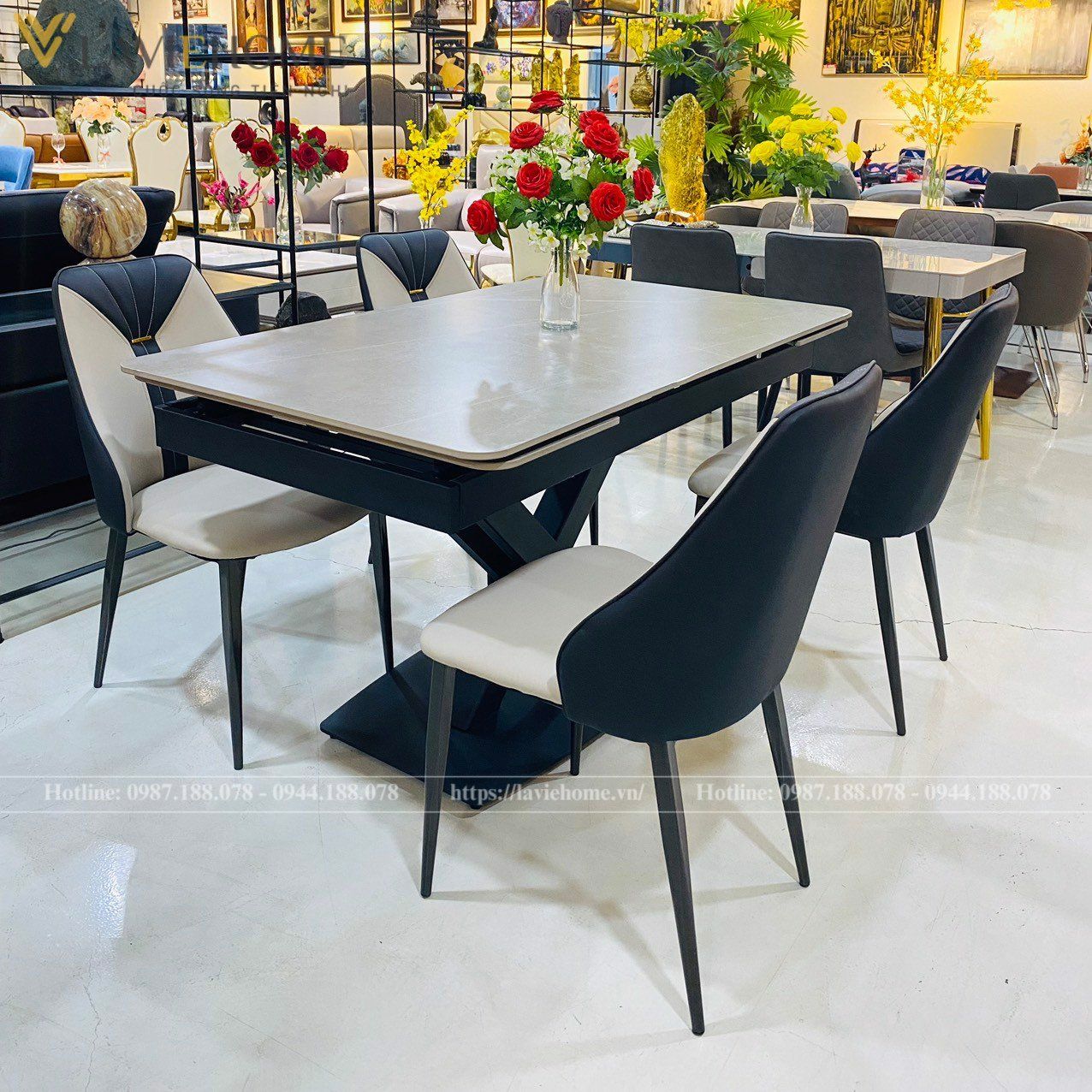Bộ Bàn Ăn Mặt Đá Oracle + Ghế Caven – Hiện Đại & Sang Trọng
