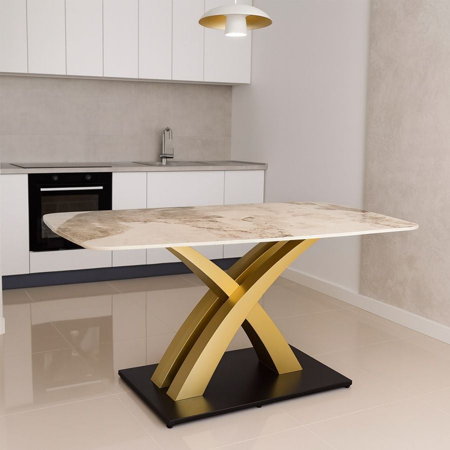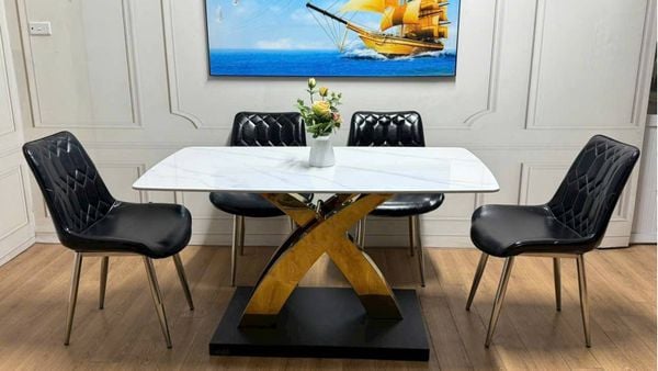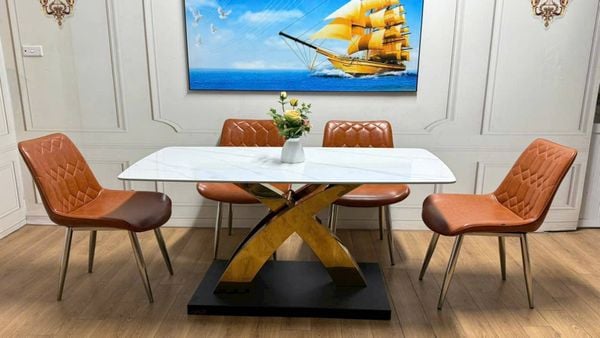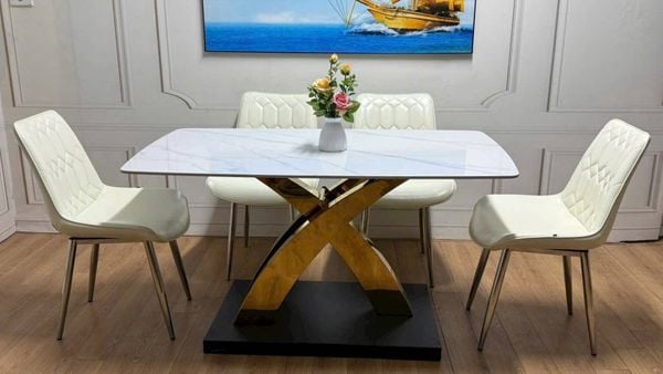 Chất liệu bàn: Mặt bàn đá Ceramic cao cấp, chống xước, bền bỉ, dễ vệ sinh. Khung chân sắt sơn tĩnh điện chắc chắn, thiết kế hiện đại.