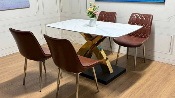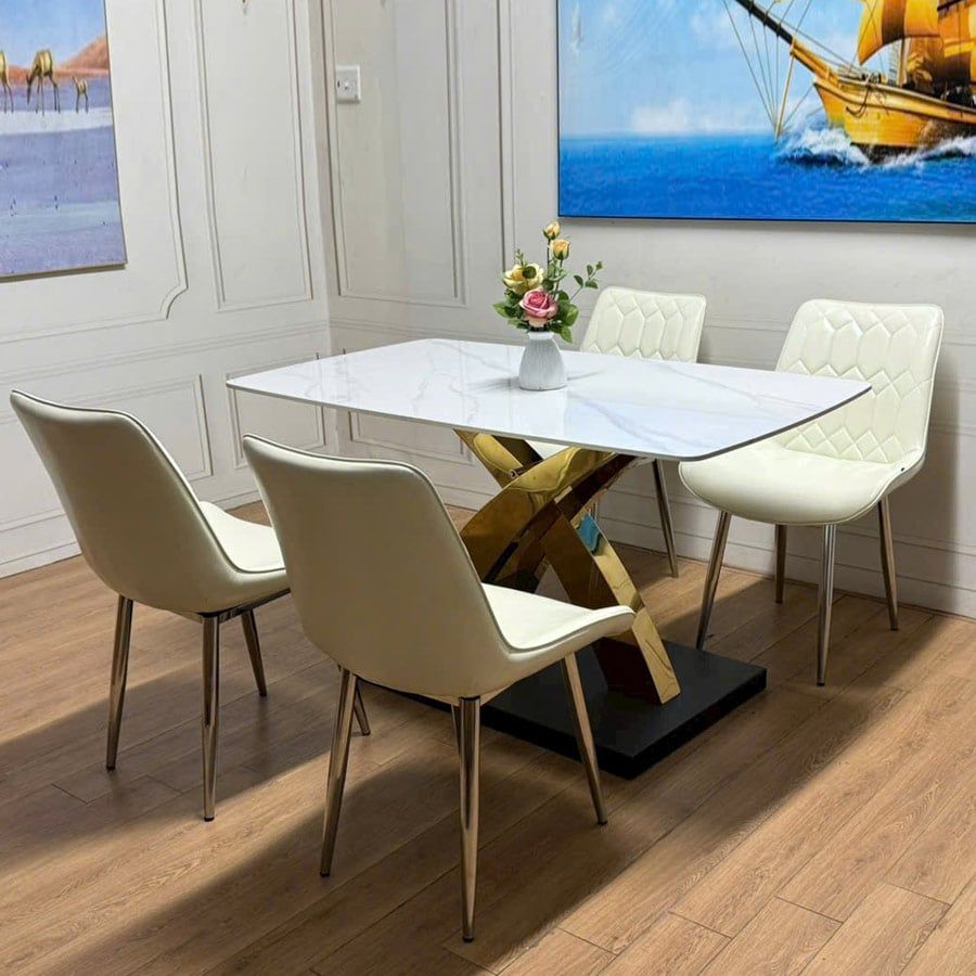 Bộ bàn ăn mặt đá Sakuzi kết hợp ghế Fiona mang đến không gian phòng ăn sang trọng, tinh tế và hiện đại. Mặt bàn đá Ceramic cao cấp không chỉ bền bỉ mà còn chống trầy xước hiệu quả, phù hợp cho gia đình trẻ năng động. Ghế Fiona thiết kế thanh lịch, bọc da cao cấp mềm mại, tạo sự thoải mái trong mỗi bữa ăn.