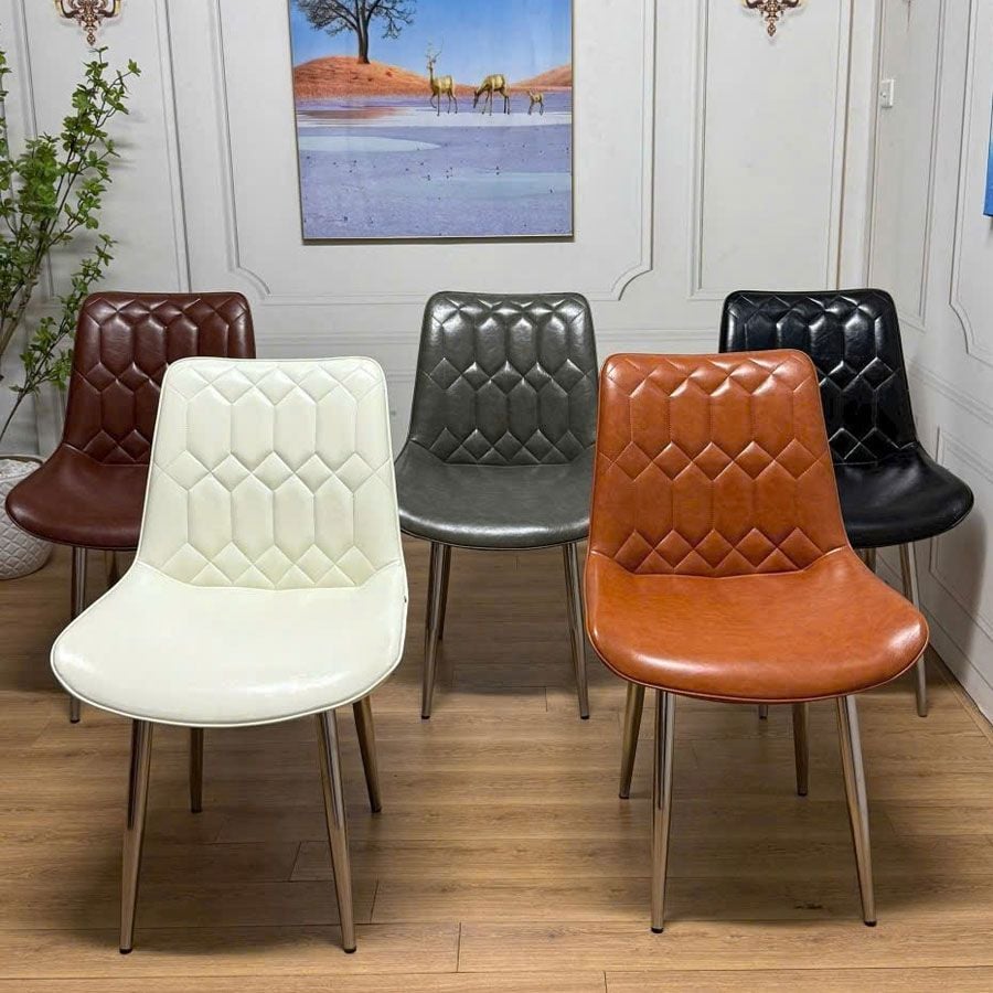 Chất liệu ghế: Mặt ghế bọc da công nghiệp cao cấp, khung chân sắt sơn tĩnh điện hoặc chân inox chắc chắn, bền đẹp.