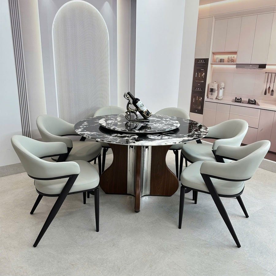 Bộ bàn ăn tròn mặt đá HAK84 kết hợp ghế ăn Biingo HAG45 là biểu tượng của sự tinh tế và hiện đại trong thiết kế nội thất. Bàn tròn giúp không gian trở nên gần gũi, tăng kết nối giữa các thành viên trong gia đình. Mặt bàn đá thạch anh cao cấp với đường vân tự nhiên sang trọng tạo nên điểm nhấn nổi bật cho phòng ăn.