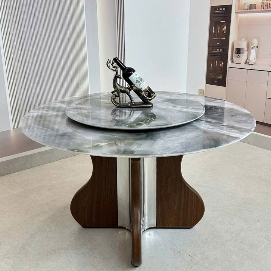 Chất liệu bàn: Mặt bàn đá thạch anh tinh thể cao cấp, chịu nhiệt tốt. Chân bàn được chế tác từ gỗ cao cấp kết hợp inox sáng bóng.