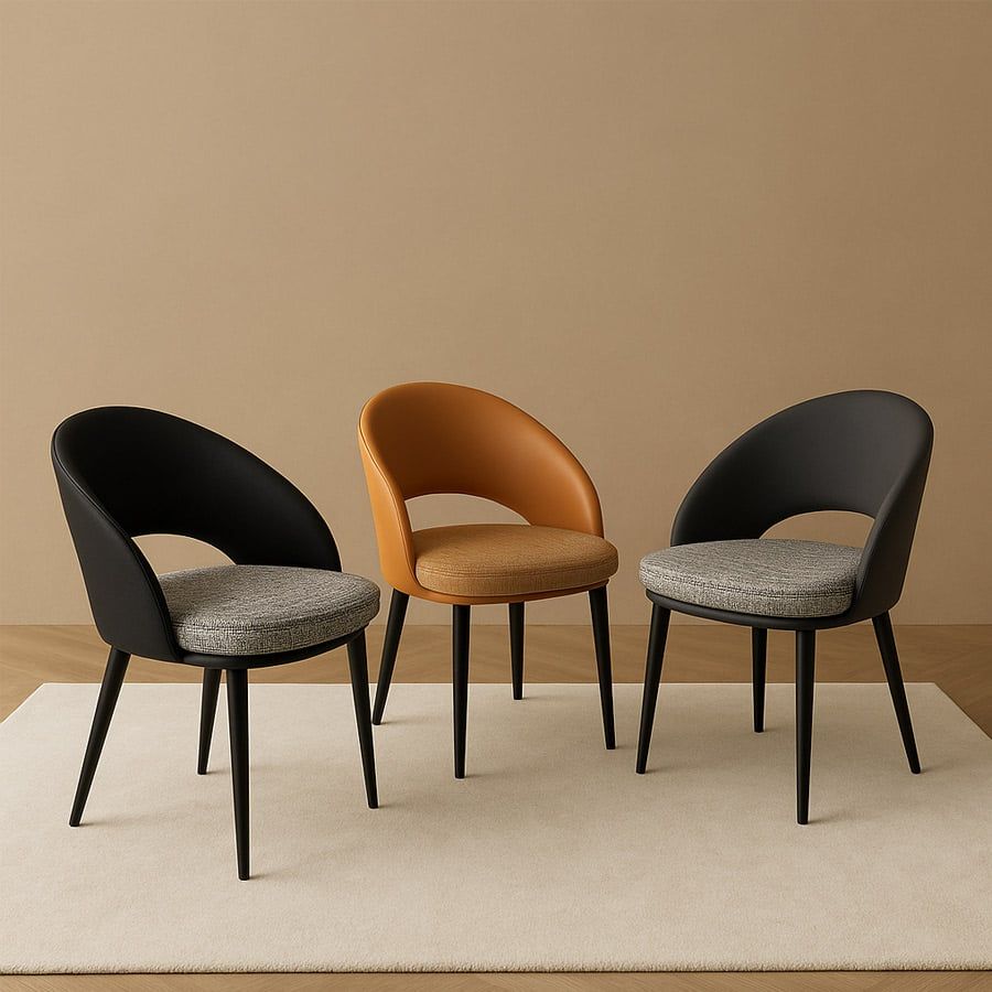 Ghế ăn VNC89 với kiểu dáng uốn cong mềm mại, phần lưng và đệm ghế phối chất liệu da PU cùng vải thô cao cấp, mang lại cảm giác êm ái và sang trọng trong từng chi tiết.
