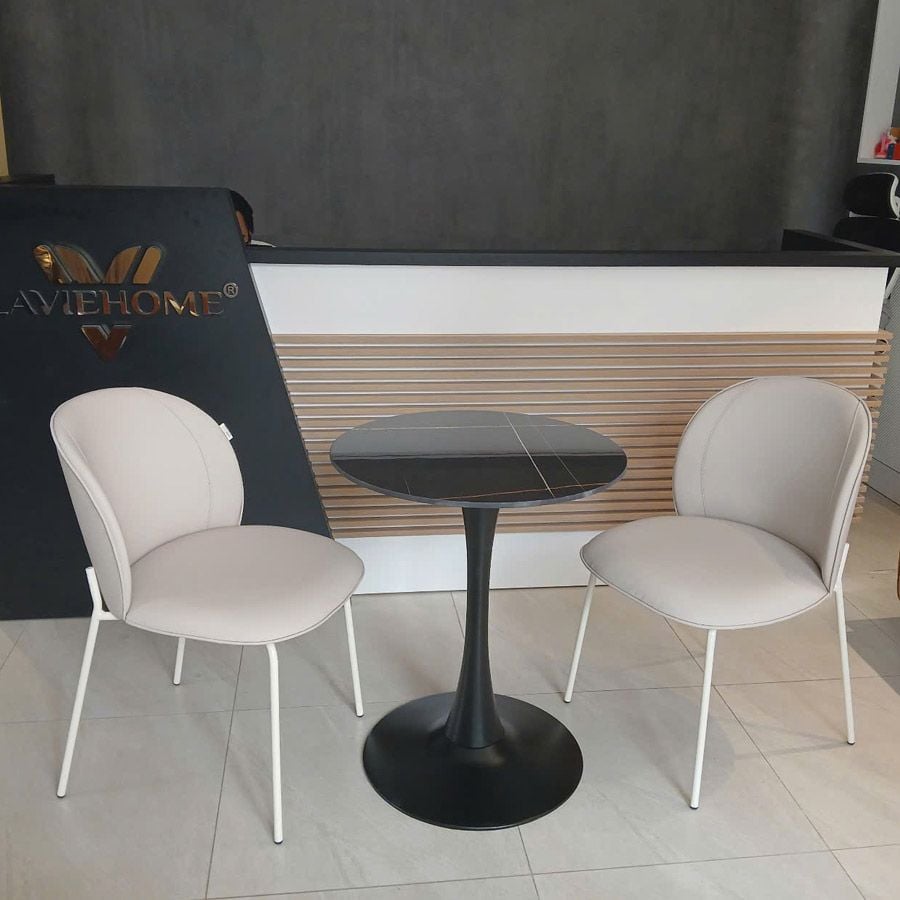 Chất liệu bàn: Chân sắt sơn tĩnh điện chắc chắn, mặt bàn đá Ceramic sang trọng, chống trầy xước.