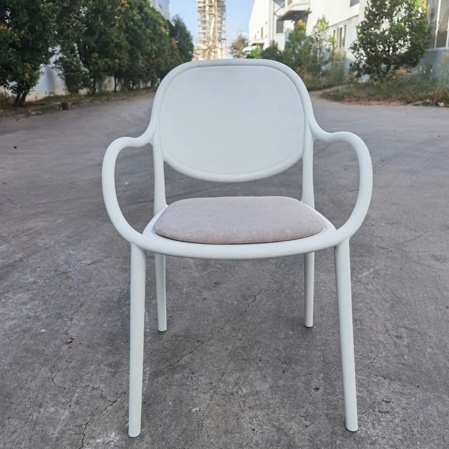 Chất liệu ghế: Lưng nhựa PP chắc chắn, mặt nệm ngồi bọc nỉ êm ái