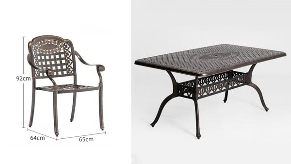Bộ Bàn Chữ Nhật Nhôm Đúc Ngoài Trời BN04CN + DPAV4 là sự kết hợp hoàn hảo giữa thiết kế tinh tế và độ bền vượt trội. Sản phẩm được làm từ nhôm đúc cao cấp sơn tĩnh điện, không chỉ mang lại vẻ đẹp sang trọng mà còn chịu được mọi điều kiện thời tiết ngoài trời. Đây là lựa chọn lý tưởng cho sân vườn, sân thượng, ban công hoặc các không gian ngoài trời khác.