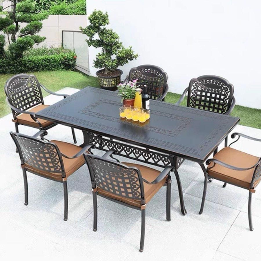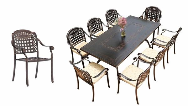 - Dễ dàng bảo quản: Chất liệu nhôm đúc sơn tĩnh điện không thấm nước, dễ dàng vệ sinh, thích hợp cho không gian ngoài trời.