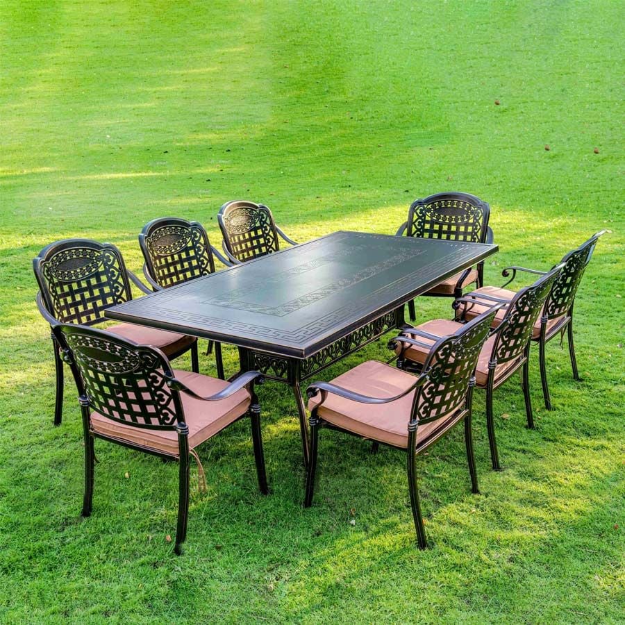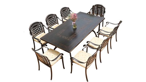 Bộ Bàn Chữ Nhật Nhôm Đúc Ngoài Trời DPBV14C + DPAV4 mang phong cách cổ điển kết hợp với sự tinh tế trong thiết kế, là sự lựa chọn hoàn hảo để trang trí không gian ngoại thất như sân vườn, ban công hay sân thượng. Với chất liệu nhôm đúc cao cấp, sản phẩm không chỉ mang lại vẻ đẹp vượt thời gian mà còn có khả năng chống chịu tốt trước mọi điều kiện thời tiết.
