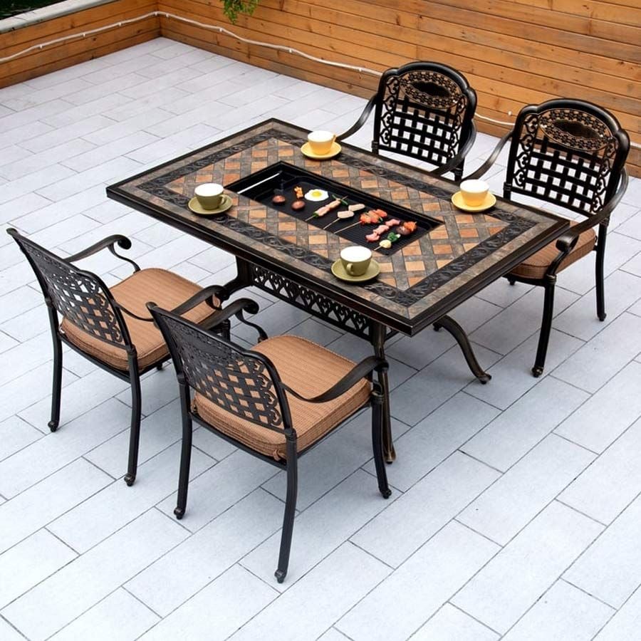 Bộ Bàn Chữ Nhật Nhôm Đúc Ngoài Trời Mặt Đá Có Bếp Nướng DPBV14B + DPAV4