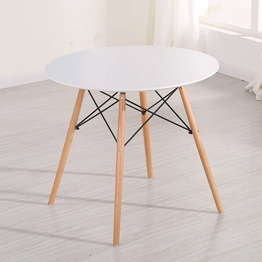 Chất liệu bàn: Mặt bàn gỗ MDF phủ sơn bệt chống trầy xước, bền đẹp. Chân bàn gỗ Beech chắc chắn, giằng sắt tăng độ ổn định.