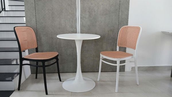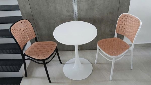 Bộ bàn ghế cafe DPB9 + S3042 là sự kết hợp hoàn hảo giữa phong cách hiện đại và chất liệu cao cấp. Mặt bàn gỗ MDF phủ Melamine chống thấm, chân bàn sắt sơn tĩnh điện bền chắc cùng ghế nhựa giả mây độc đáo, mang lại không gian thoải mái, sang trọng và ấn tượng cho quán cafe, nhà hàng hoặc khu vực thư giãn tại gia.
