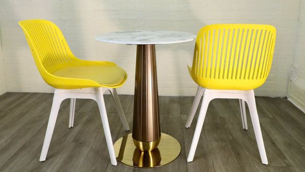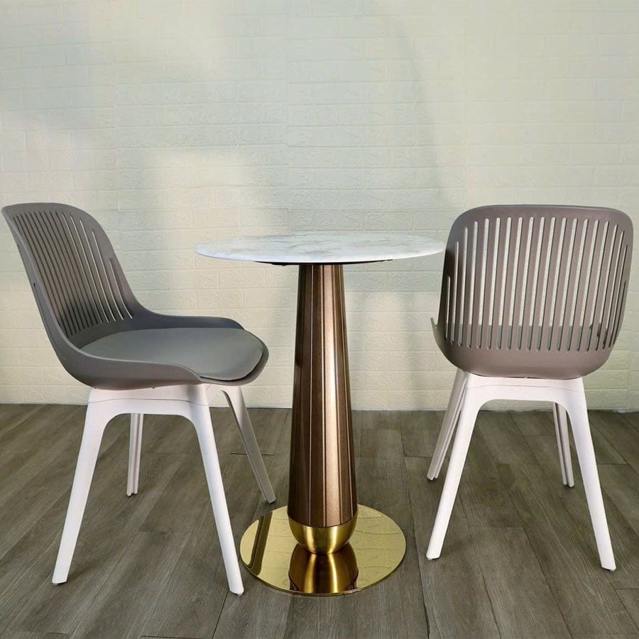 Bộ bàn ghế cafe VSCF501 + VSY616 là lựa chọn hoàn hảo cho không gian hiện đại và năng động. Mặt bàn đá mạ pha lê mang đến vẻ đẹp sang trọng, sáng bóng và dễ dàng vệ sinh. Ghế VSY616 được thiết kế từ nhựa đúc nguyên khối bền bỉ, kết hợp cùng nệm PU êm ái tạo cảm giác thoải mái khi ngồi lâu. Bộ sản phẩm này phù hợp cho không gian quán cafe, ban công, sân vườn hay khu vực tiếp khách nhỏ gọn.