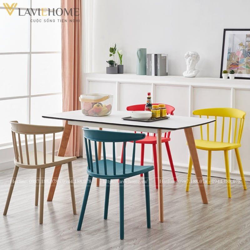 - Ghế nhựa PP bền bỉ: Chống ẩm, dễ lau chùi, chịu lực tốt.