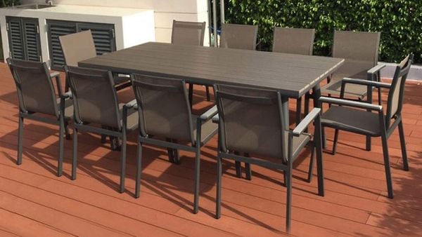 - Độ bền vượt trội: Chất liệu nhôm đúc và Polywood giả gỗ không cong vênh, không mối mọt, đảm bảo sản phẩm luôn bền đẹp dưới mọi điều kiện thời tiết. Lưới Textilen chống nóng, chịu lực tốt, không bị giãn hay hỏng hóc khi sử dụng lâu dài.