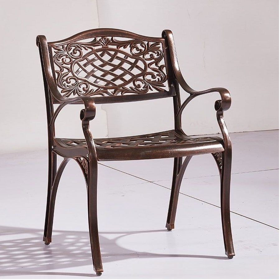 Ghế sân vườn có thiết kế tựa lưng cao, phần ngồi rộng rãi mang lại cảm giác thoải mái ngay cả khi ngồi lâu. Chất liệu nhôm đúc nhẹ nhưng chắc chắn, dễ dàng di chuyển và sắp xếp theo nhu cầu sử dụng. Lớp sơn tĩnh điện giúp ghế chống gỉ sét và không bị ăn mòn khi sử dụng ngoài trời.