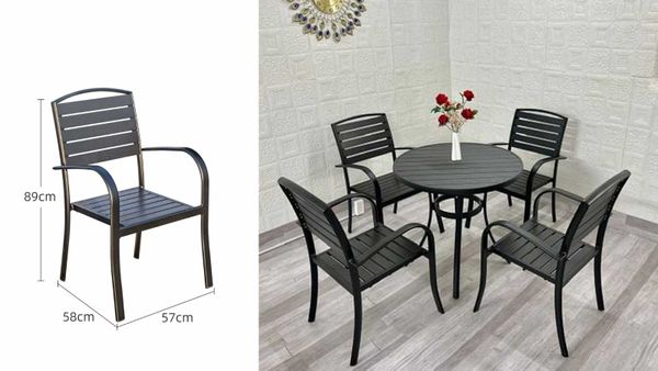 - Phù hợp mọi không gian: Bộ sản phẩm lý tưởng cho sân vườn, ban công, sân thượng hoặc quán cafe ngoài trời., Kiểu dáng đơn giản nhưng không kém phần sang trọng, dễ dàng phối hợp với các phong cách trang trí khác nhau.