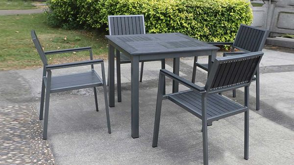 Bộ Bàn Vuông Ngoài Trời Khung Nhôm Nan Polywood DPBV21A + DPAV11