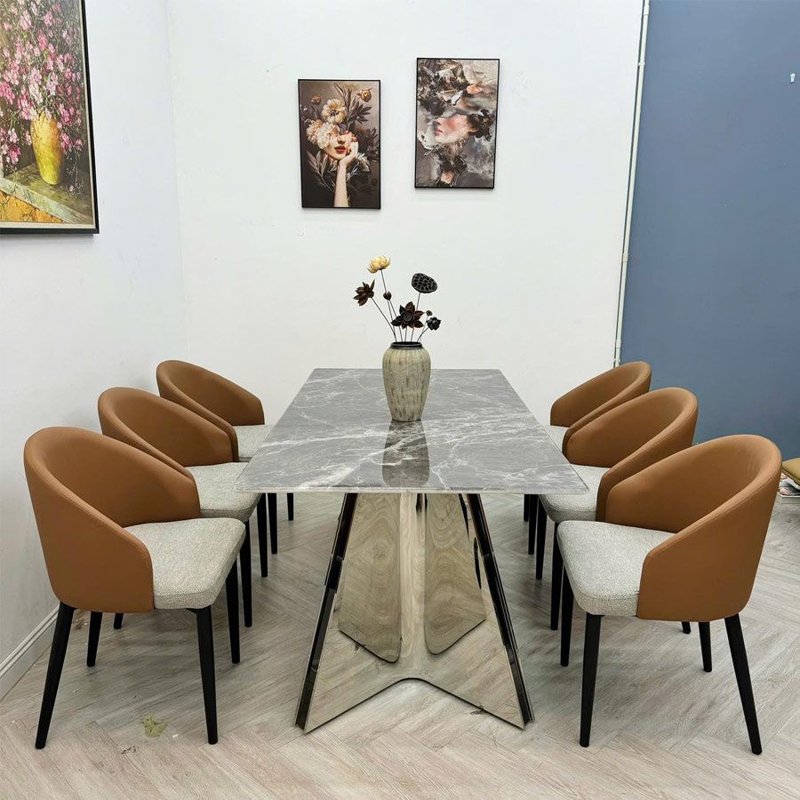 Ghế ăn ACG01 gây ấn tượng với thiết kế bo cong phần tựa lưng ôm sát cơ thể, tạo cảm giác thư giãn tối đa. Sự kết hợp giữa da công nghiệp và vải nỉ mang đến trải nghiệm ngồi mềm mại, thông thoáng nhưng vẫn giữ được vẻ sang trọng hiện đại. Chân ghế được chế tạo từ sắt sơn tĩnh điện, đảm bảo độ chắc chắn và khả năng chịu lực vượt trội. Màu sắc trung tính dễ phối cùng nội thất như đen và cam giúp ghế nổi bật trong mọi không gian từ phòng ăn gia đình đến nhà hàng, quán café.