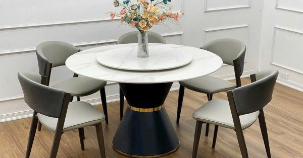 - Dễ dàng phối với bàn ăn mặt gỗ, đá hoặc bàn ăn tròn
