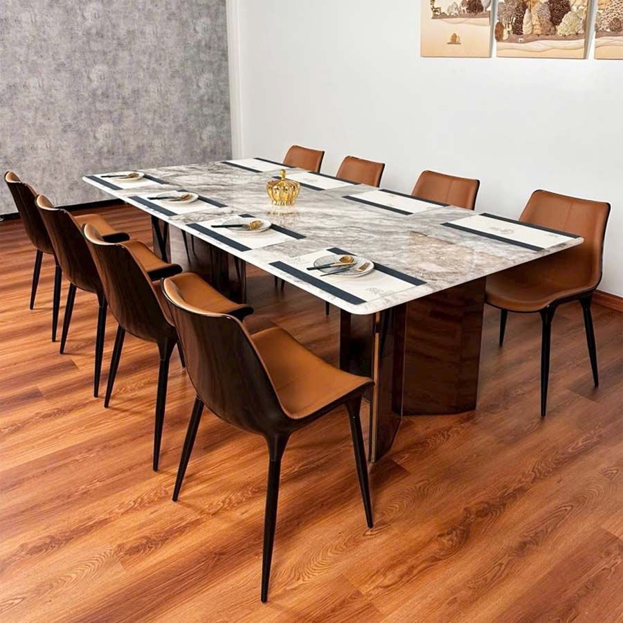- Chất liệu da công nghiệp cao cấp: Không thấm nước, nệm mút độ đàn hồi cao giúp người ngồi cảm thấy êm ái, lý tưởng cho các bữa ăn dài hoặc cuộc họp mặt.