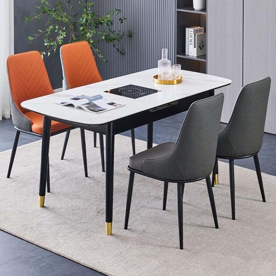 - Chất liệu da công nghiệp cao cấp: Không thấm nước và nệm mút có độ đàn hồi cao mang lại sự êm ái khi ngồi lâu, thích hợp cho các bữa ăn gia đình hoặc các cuộc họp mặt.