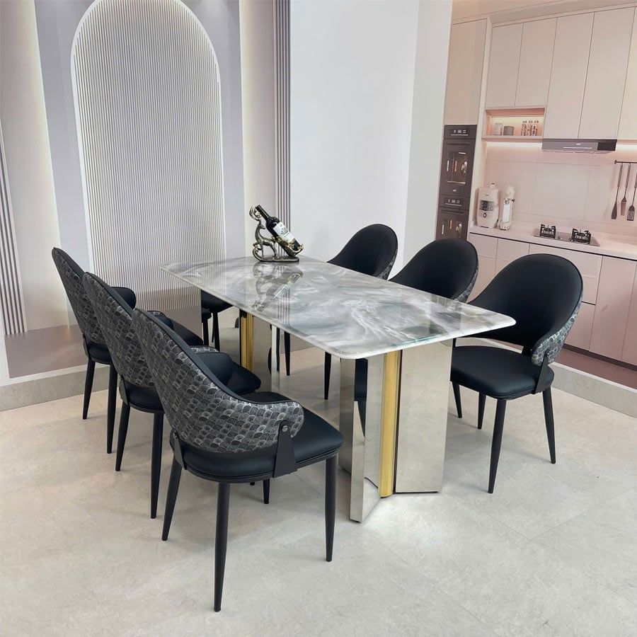 - Phối hợp dễ dàng với bàn ăn mặt đá, bàn gỗ, bàn kính cao cấp.
