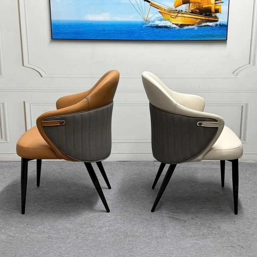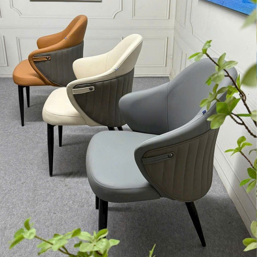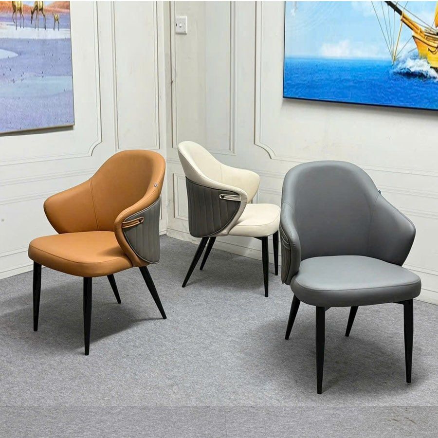 Khung chân ghế bằng sắt sơn tĩnh điện, vững chắc và bền bỉ, mang lại sự an tâm tuyệt đối khi sử dụng. Màu sắc đa dạng từ ghi, da bò đến kem giúp bạn dễ dàng phối hợp với nhiều phong cách nội thất khác nhau.