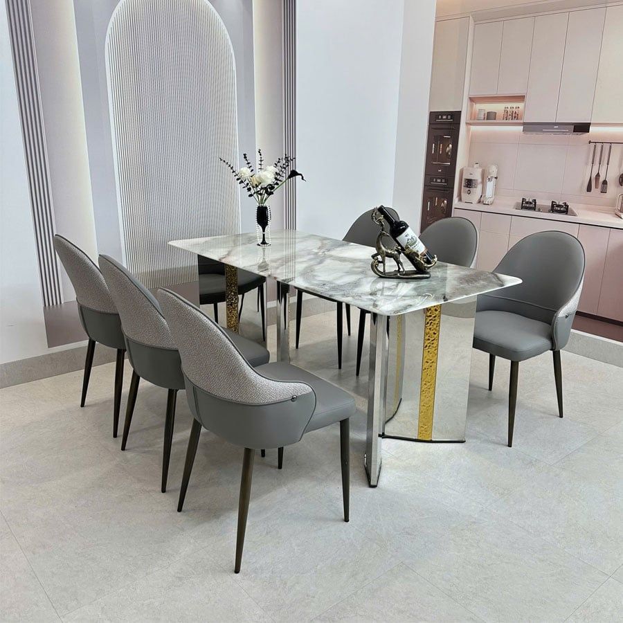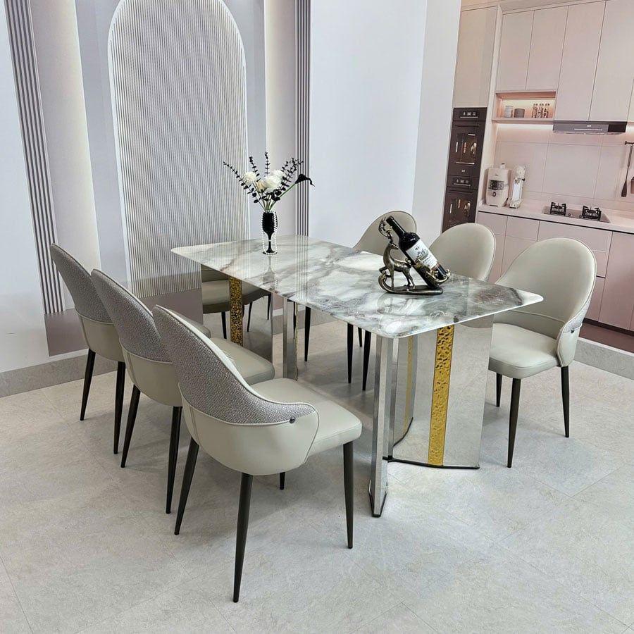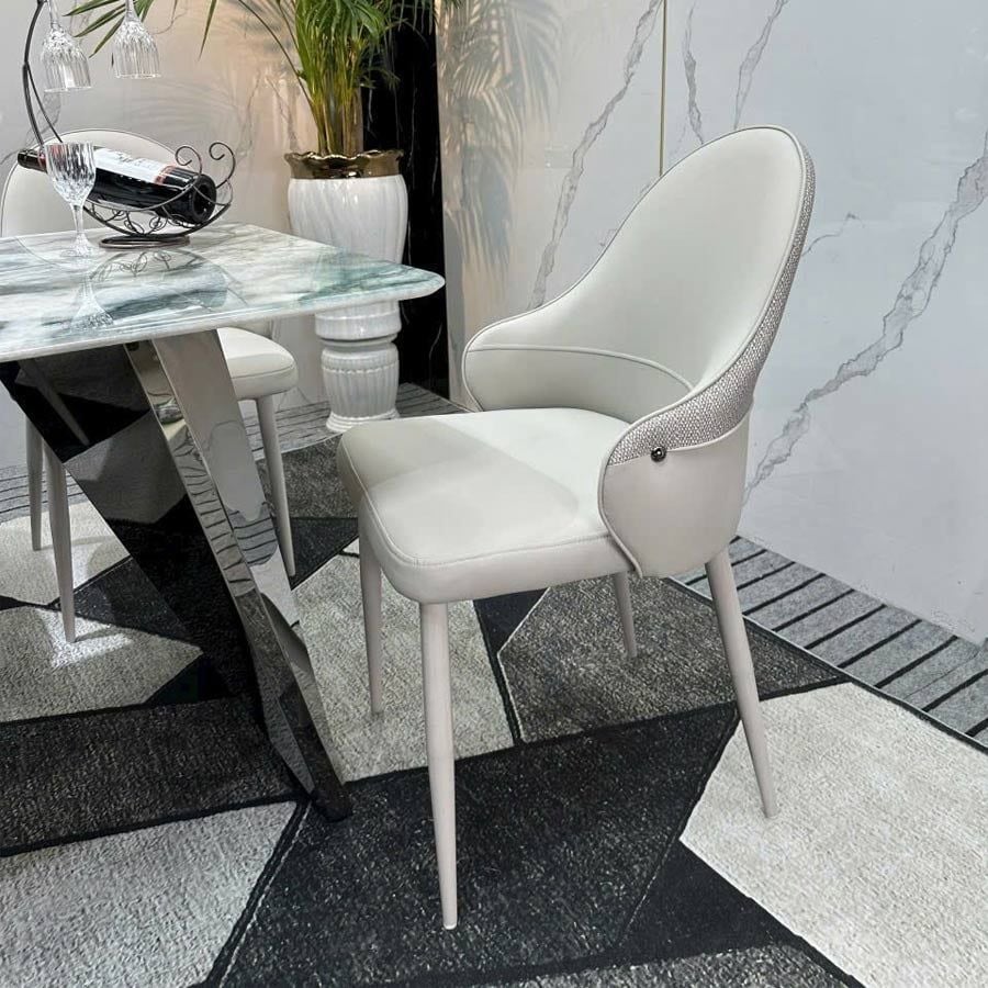 Tông màu trung tính như da bò và ghi giúp ghế dễ dàng phối hợp với các mẫu bàn ăn mặt đá, bàn gỗ, hay nội thất cao cấp trong căn hộ, biệt thự, nhà hàng sang trọng.