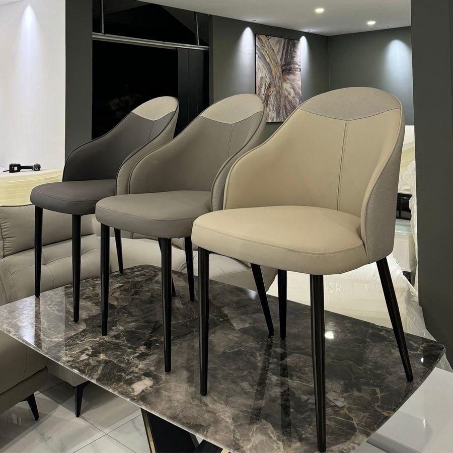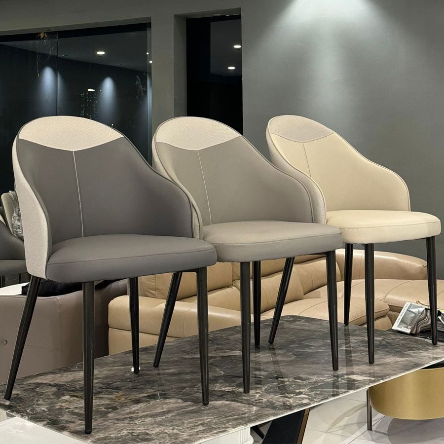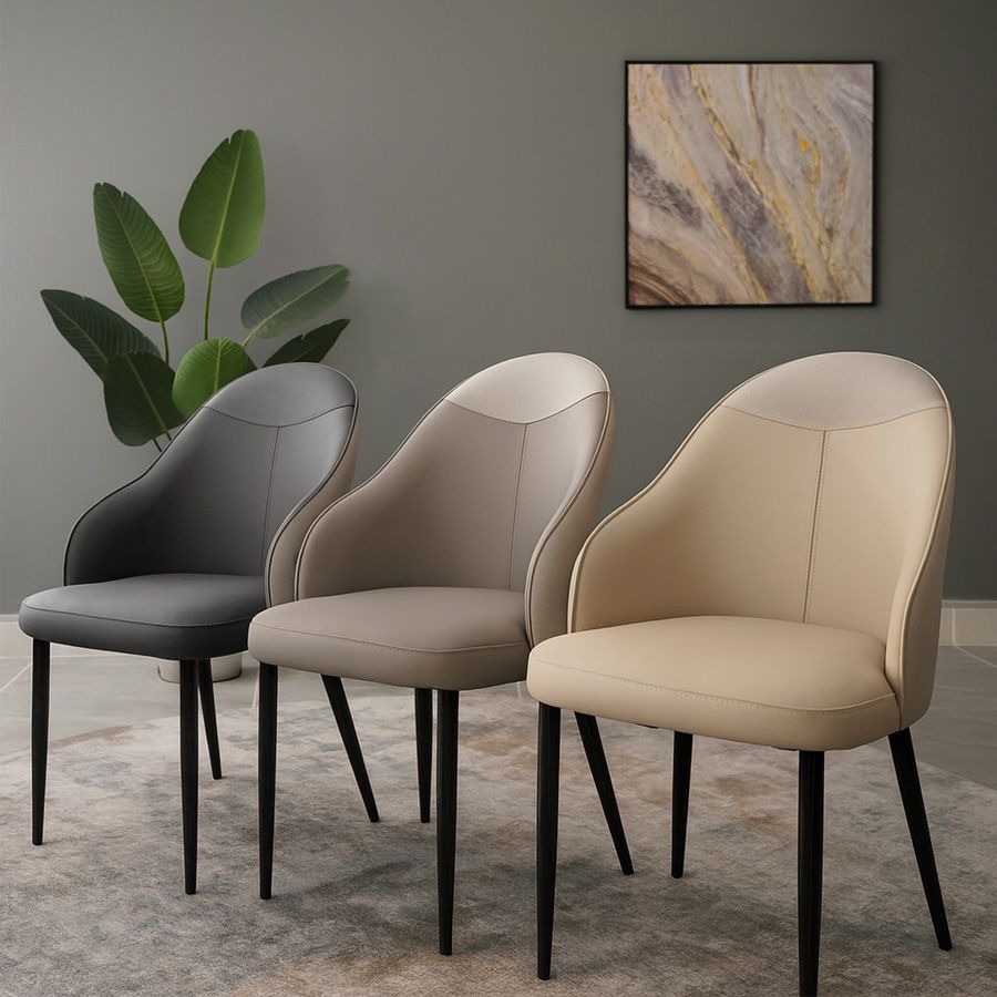 Ghế ăn bọc da TVN01 là sự kết hợp hài hòa giữa phong cách hiện đại và công năng tiện nghi. Thiết kế với phần lưng bo cong ôm trọn cơ thể giúp nâng đỡ tư thế ngồi một cách thoải mái và chuẩn khoa học. Chất liệu da công nghiệp cao cấp được xử lý mịn màng, mang đến cảm giác êm ái, dễ lau chùi và sang trọng. Ba gam màu trung tính (xám đậm – xám nhạt – kem) phù hợp với mọi không gian nội thất, từ tối giản đến sang trọng.